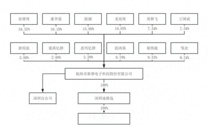 实控人表决权过半。新睿电子控股股东、实际控制人均为张继周,直接持股比例为34.52%,还通过担任新锐泓执行事务合伙人间接控制3.8%的表决权,同时与持股比例16.19%的董李强是一致行动人关系,即张继周合计控制54.51%的表决权。