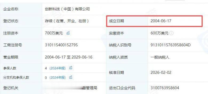 需要指出的是,招股书显示张继周2000年7月至2001年5月任职于创新科技(中国)有限公司,而企查查显示该公司成立时间为2004年6月17日,其如何入职一家尚未成立的企业,需要公司对此进行解释说明。