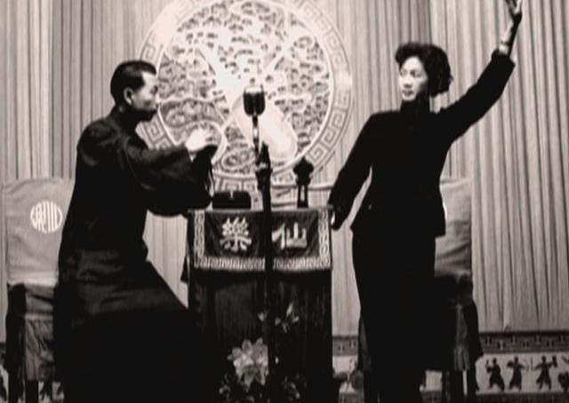 与恩师凌文君(左)拼档长篇弹词《金陵杀马》
